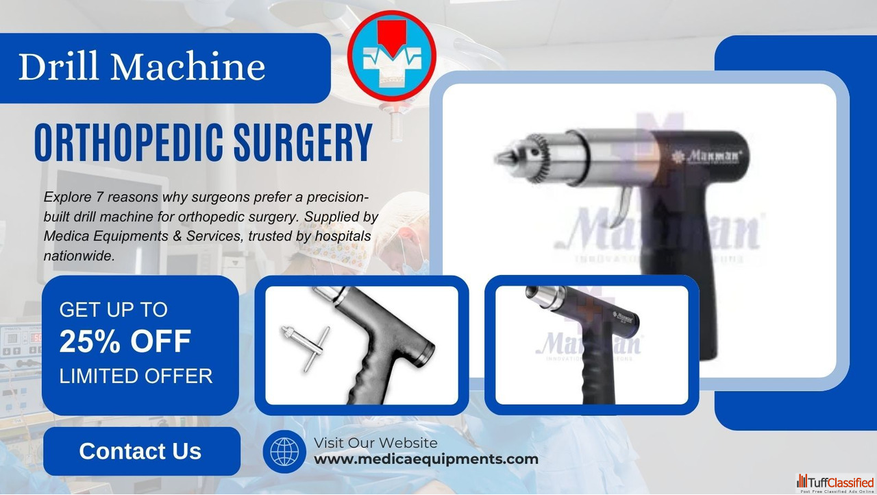 A premium drill machine for orthopedic surgery is trusted because of its precision cutting capability, safety standards, and ergonomic build that supports long procedures. Surgeons prefer tools that enhance accuracy while minimizing fatigue, and Medica Equipments & Services provides equipment that meets these expectations with reliability and advanced engineering.