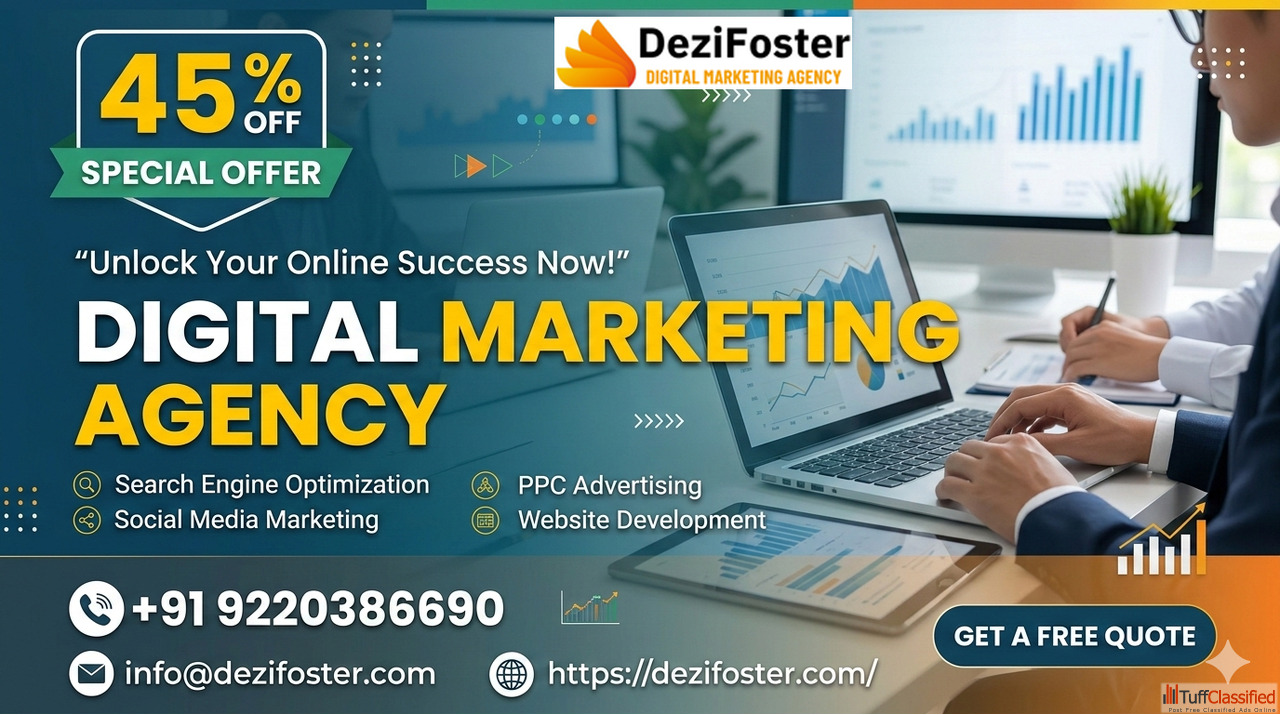 Looking to grow your business online with proven strategies and measurable results? Our digital marketing agency helps brands increase visibility, generate quality leads, and boost conversions through data-driven campaigns. Recognized as the best digital marketing agency, we specialize in SEO, social media marketing, PPC advertising, content marketing, and website development tailored to your goals. If you are searching for a digital marketing agency near me, we provide personalized support and transparent reporting to ensure maximum ROI. For a limited time, enjoy 45% off on our comprehensive digital marketing packages and take your business to the next level.