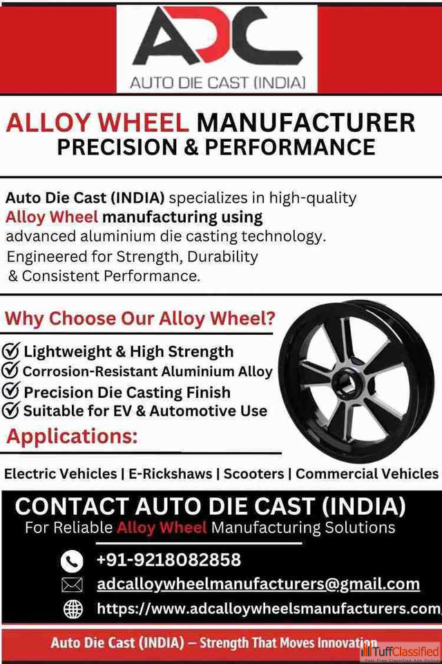 Auto Die Cast (INDIA) delivers high-quality alloy wheel manufacturing using advanced aluminium die casting technology. Designed for strength, durability, and reliable performance, our alloy wheels are ideal for EVs, e-rickshaws, scooters, and commercial vehicles. Trusted precision that drives innovation.