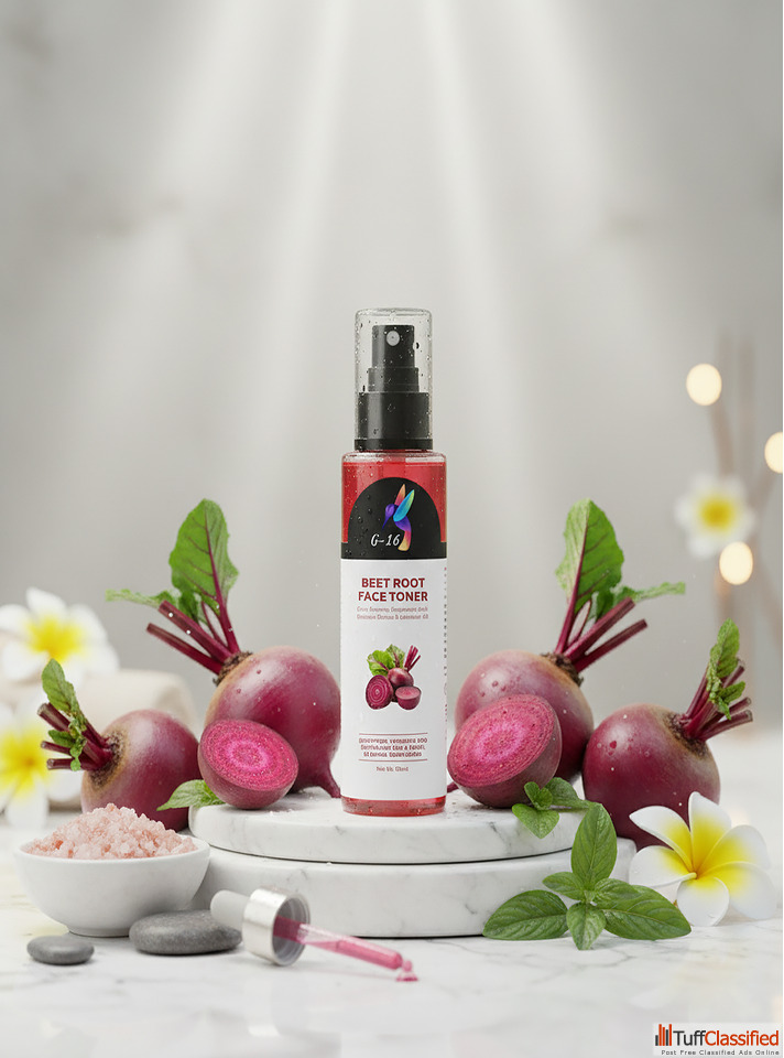 G-16 Beet Root Face Toner revitalizes your skin with the power of beetroot extracts. It gently removes impurities, tightens pores, and helps maintain the skin’s natural pH balance. Packed with antioxidants, it energizes dull skin and boosts radiance. Lightweight and soothing, it preps your face perfectly for serums and moisturizers, leaving skin hydrated, soft, and refreshed daily. Suitable for all skin types.