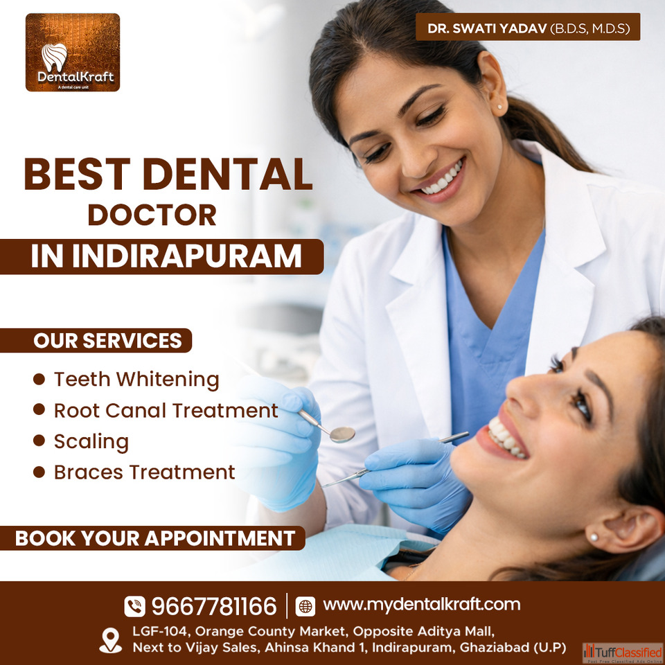 Best Dental Doctor in Indirapuram provides professional dental care with accurate diagnosis and treatment planning. Dental Kraft features skilled dent...