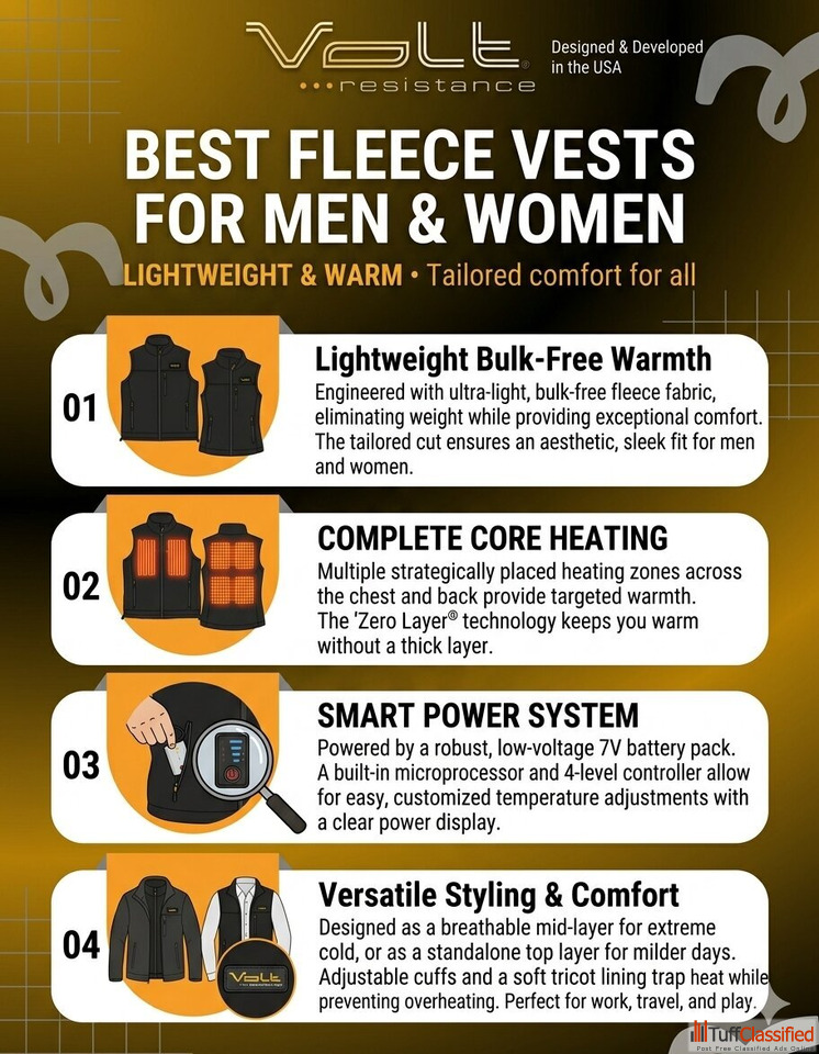 Fleece vests offer a smart balance of warmth, comfort, and flexibility compared to traditional jackets. By keeping your core insulated while allowing ...