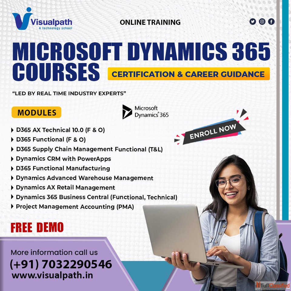 Join Visualpath’s Microsoft Dynamics 365 Online Courses with real-time expert training. Learn D365 F&O, CRM, Supply Chain, AX, PMA & more. car...