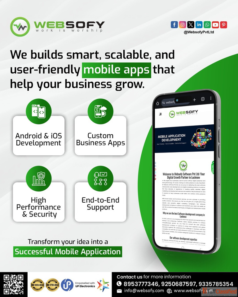 Looking for a top mobile app development company in Lucknow? Websofy Pvt. Ltd. offers custom app development services in Lucknow, delivering high-qual...