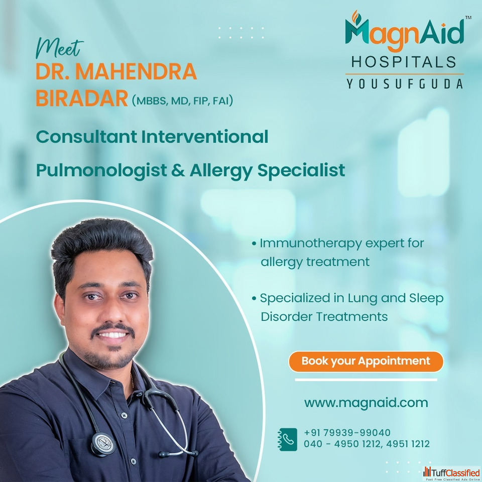 Magnaid Hospitals is known for having the best pulmonologists in Hyderabad, offering advanced care for asthma, COPD, lung infections, sleep disorders, and more. With expert doctors, modern facilities, and trusted care in Yousufguda and Ameerpet, Magnaid stands as the best hospital for pulmonology in Hyderabad.