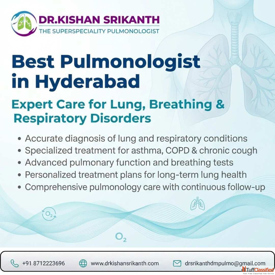 If you are looking for the best pulmonology specialist in Hyderabad, Dr. Kishan Srikanth offers advanced lung care using modern diagnostic methods. His expertise in managing chronic and acute respiratory conditions, combined with a patient-first approach, ensures reliable treatment outcomes and improved breathing health.