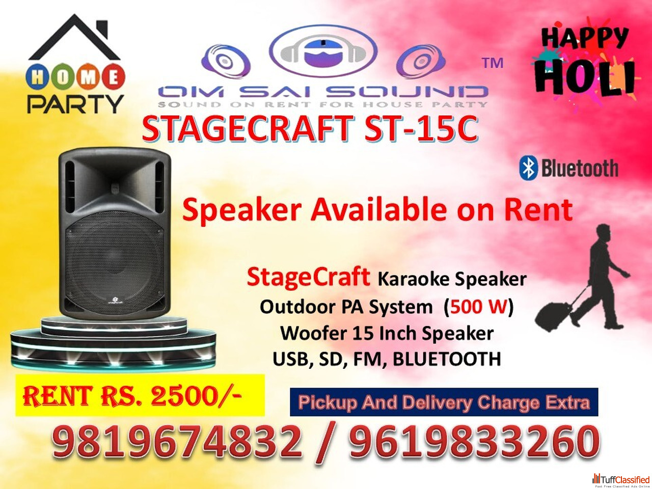 Make your Holi 2026 celebration louder with the Stagecraft ST 15C sound system on rent at just ₹2500. Powerful output, deep bass, and clear sound—perf...