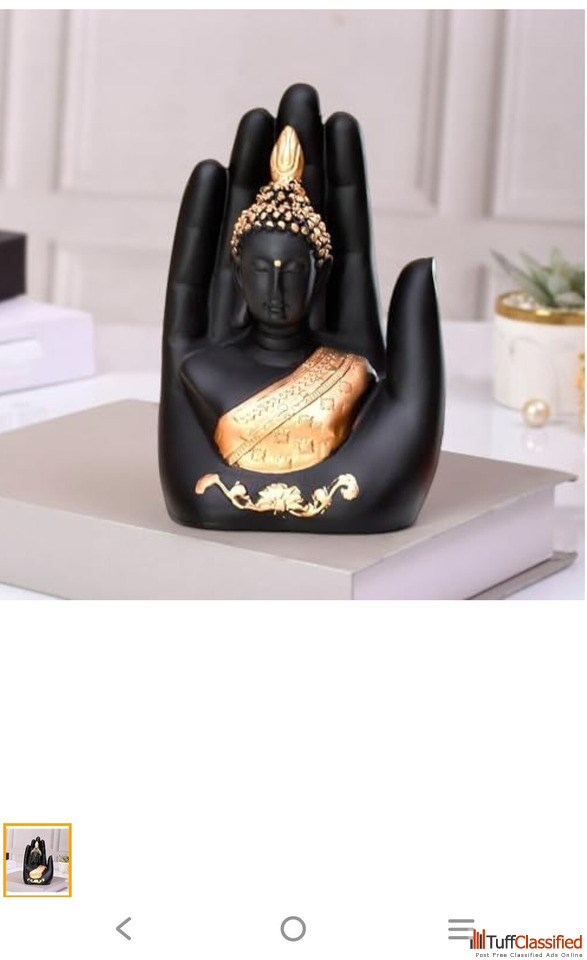 Transform your space with this exquisite Buddha hand incense holder, a stunning fusion of spirituality and contemporary design. Crafted from durable resin, this decorative statue features a sophisticated black finish accented with elegant gold detailing. The upward-facing palm serves as both a practical incense holder and a powerful symbol of blessing and protection. Intricate gold patterns and ornate designs adorn the hand, creating a mesmerising contrast against the matte black surface. Perfect as a centrepiece for your meditation space, living room, or altar, this versatile piece adds a touch of zen elegance to any interior setting. The holder accommodates standard incense sticks while doubling as an artistic sculptural element. Its stable base ensures secure placement on any flat surface, while the thoughtful design allows for easy ash collection. Whether used for aromatic purposes or purely as a decorative element, this Buddha hand statue brings a sense of peace and artistic refinement to your home décor.