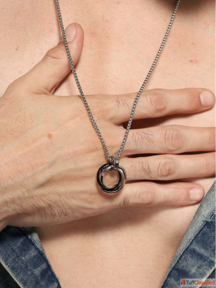 Buy black stainless steel three rings round circle pendant for men by Jewelor, a bold and stylish accessory perfect for daily wear, parties, and gifting, offering durable quality, modern design, and a confident fashion statement for every occasion.