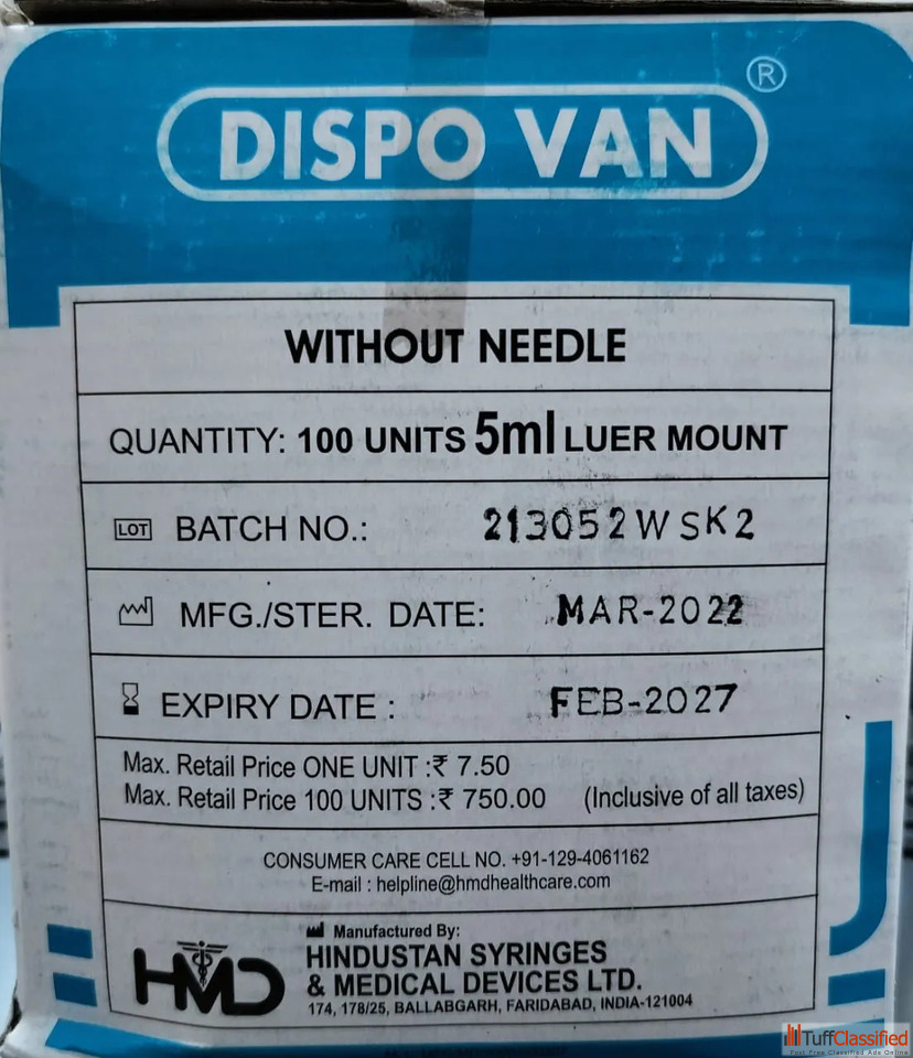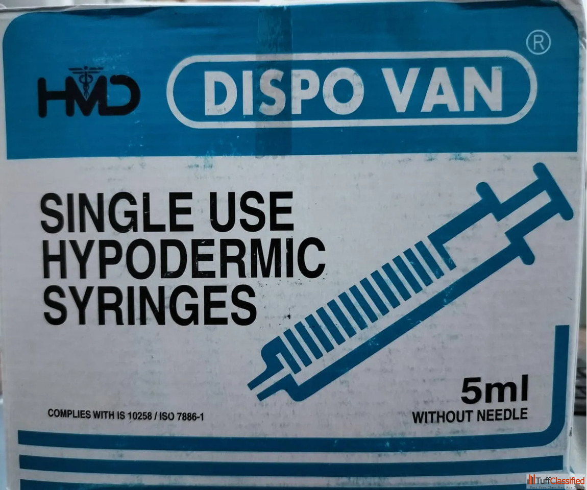 The DispoVan 5ml Syringe is widely used for precise fluid delivery, while the DispoVan Syringe Without Needle offers flexibility for procedures requiring separate needle selection. Each unit is sterile, reliable, and easy to handle.