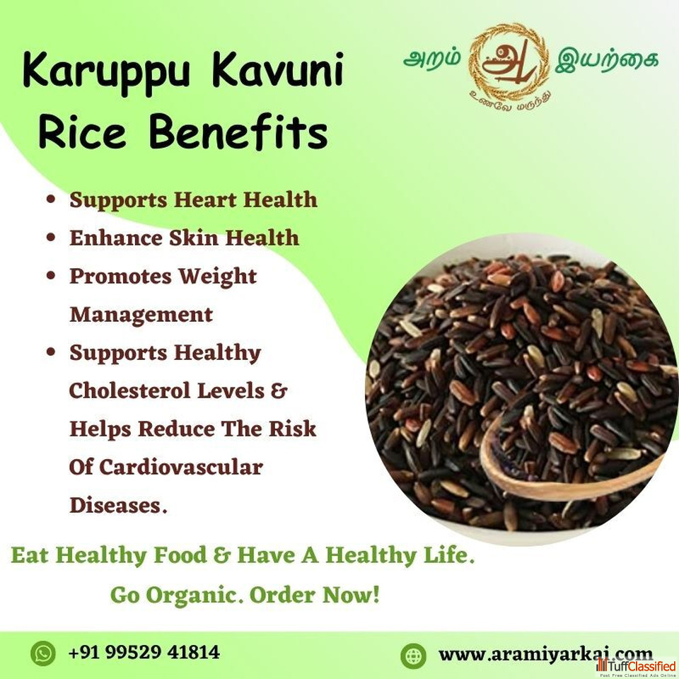 Experience the superfood benefits of Karuppu Kavuni rice by shopping online at Aram Iyarkai. This ancient black rice variety is nutrient-dense, packed with antioxidants, and gluten-free. Perfect for desserts or healthy meals, enjoy the convenience of doorstep delivery of this organic treasure.