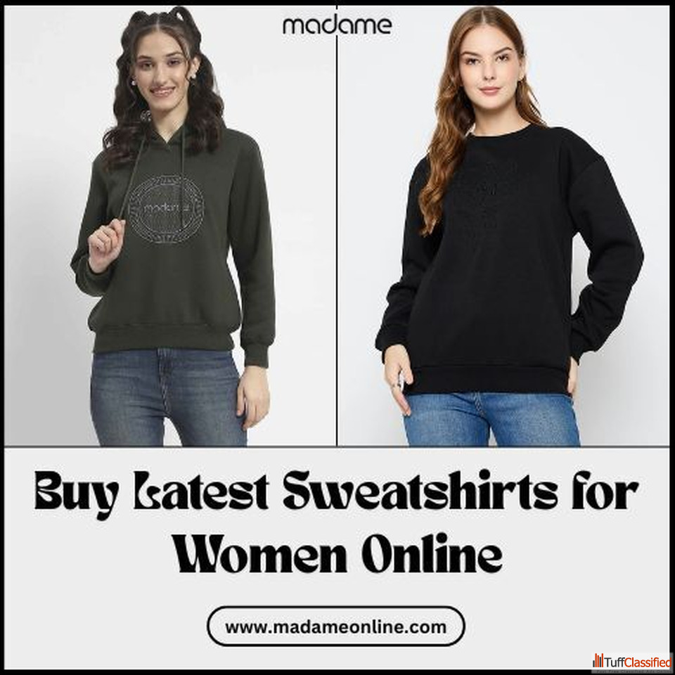 Discover the latest range of sweatshirts for women at Madame, designed for effortless comfort and trendsetting style. From classic pullovers and oversized fits to zip-up and printed styles, our collection suits every mood. Whether you’re lounging at home or stepping out, these sweatshirts add a cozy yet chic touch. Explore soft cotton blends and stylish hoodies for women crafted for all-day comfort. Shop now at Madame Online and upgrade your casual wardrobe with premium, fashionable layers perfect for every occasion.