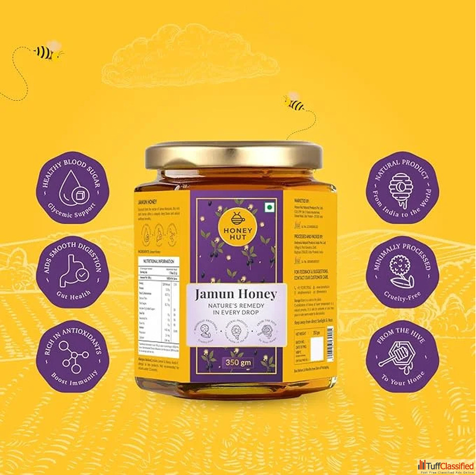 Honey Hut Raw Jamun Honey is 100% pure, natural, and unprocessed honey sourced from Jamun blossoms. Rich in antioxidants, minerals, and natural enzymes, this honey supports immunity, digestion, and overall wellness.