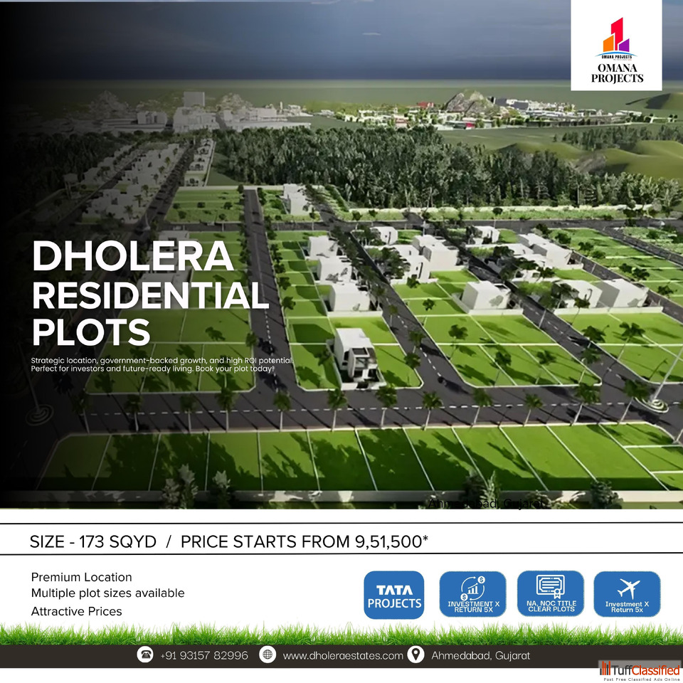 Located close to the upcoming Dholera International Airport, Ahmedabad–Dholera Expressway, industrial zones, and logistics hubs, these plots offer unmatched connectivity and high appreciation potential. The projects feature wide roads, underground utilities, water supply, drainage systems, green open spaces, and smart infrastructure designed for modern living. Flexible plot sizes and competitive pricing make these properties ideal for end users, investors, and NRIs looking for long-term growth.