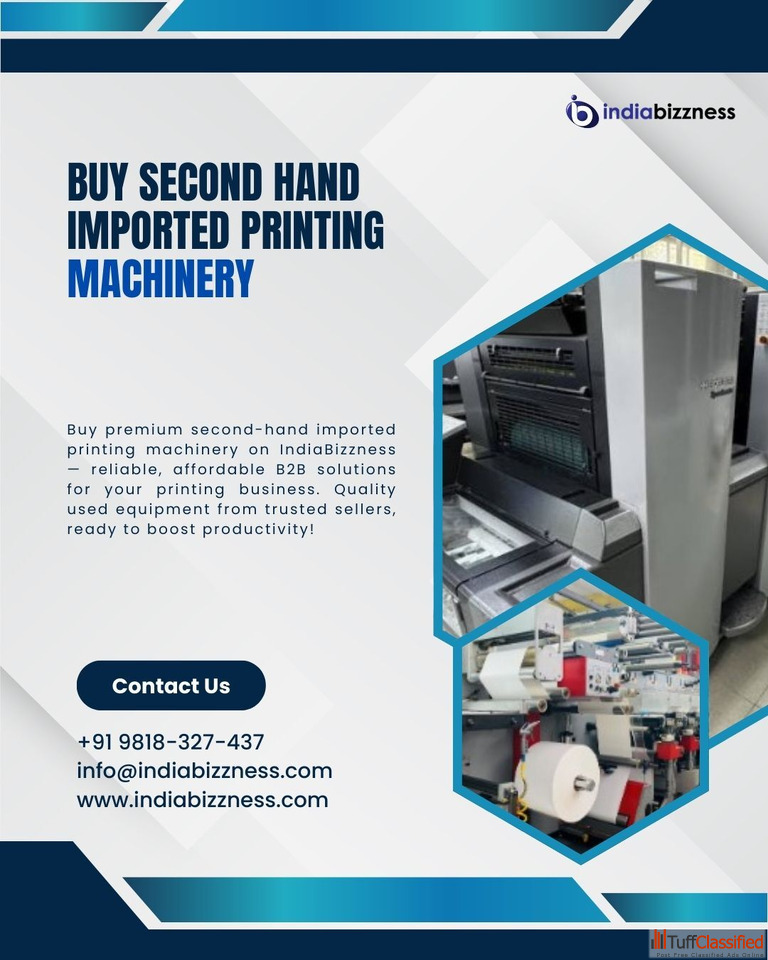 Upgrade your printing business without heavy investment by choosing second-hand imported printing machinery from IndiaBizzness B2B Portal. Explore a wide selection of high-quality used printing machines from verified and trusted sellers across India, available at competitive prices to fit every budget. From offset and digital presses to other printing equipment, IndiaBizzness makes it easy to find and connect with reliable suppliers. Visit the IndiaBizzness website today and take your printing production to the next level.