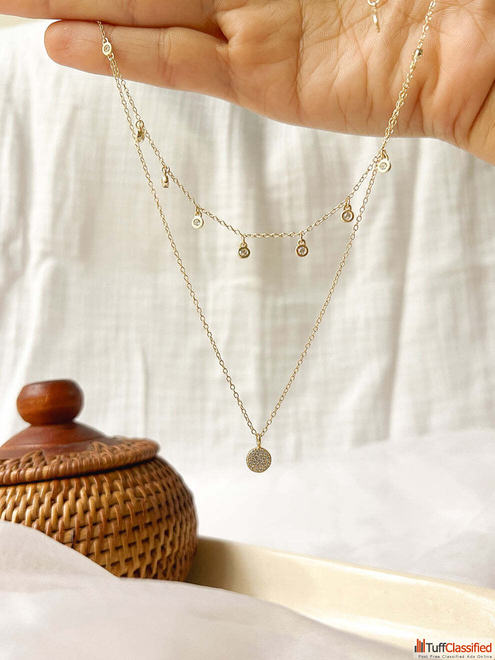 Asmah Shop Twinkle Double Layer 18K Gold Plated Silver Neckchain to women. Find fanciful ornaments of sterling silver jewellery having a lovely layered design, suitable not only in party but also in day to day fashion and also as a present. A fashionable neckchain made of silver and worn by women who are fond of minimal and statement jewellery.