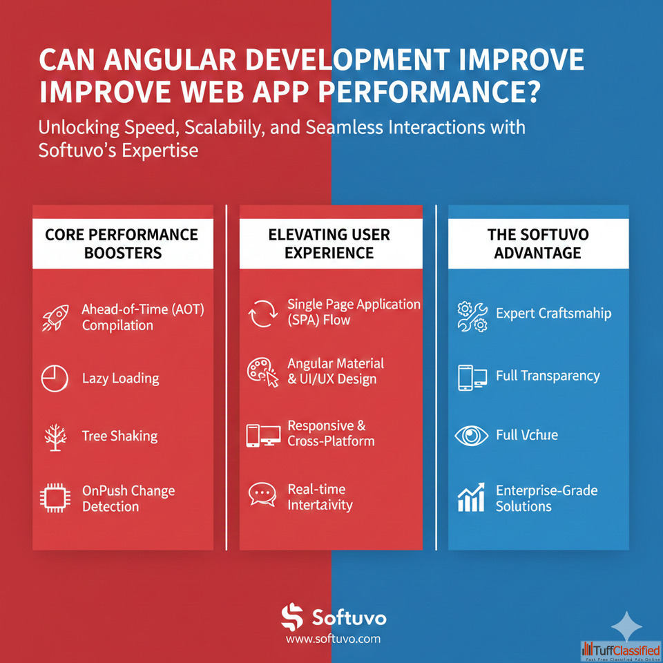 By leveraging Angular’s component-based architecture, efficient data binding, and built-in optimization features, Softuvo’s Angular Development services help reduce load times and improve overall application speed. With a strong focus on clean code, scalable architecture, responsive design, and security, Softuvo creates web applications that enhance user experience, boost engagement, and support long-term business growth.