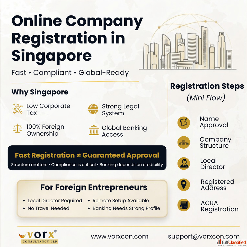Registering a Singapore company as a foreigner has never been easier. Vorx Consultancy offers complete assistance for non-residents, including company incorporation, legal compliance, local director services, and banking solutions. Singapore’s business-friendly environment, strategic location in Asia, and favorable tax system make it an ideal choice for international entrepreneurs. Vorx ensures a smooth, fast, and fully compliant registration process so you can focus on building and scaling your business globally without ever leaving your home country.