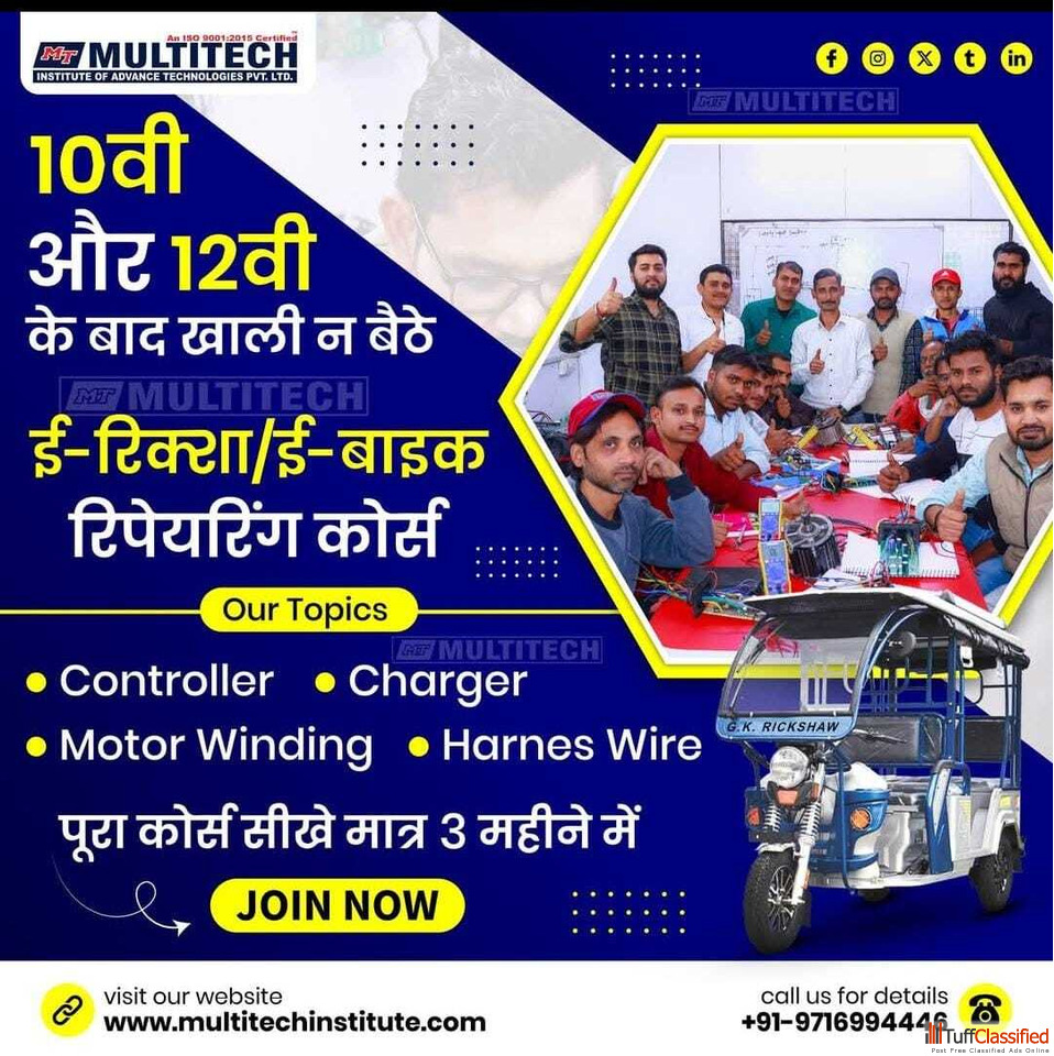 Multitech Institute is the best E-Vehicle Repairing Training Institute in India, offering practical-based classes for the E-Vehicle Repairing Course i...