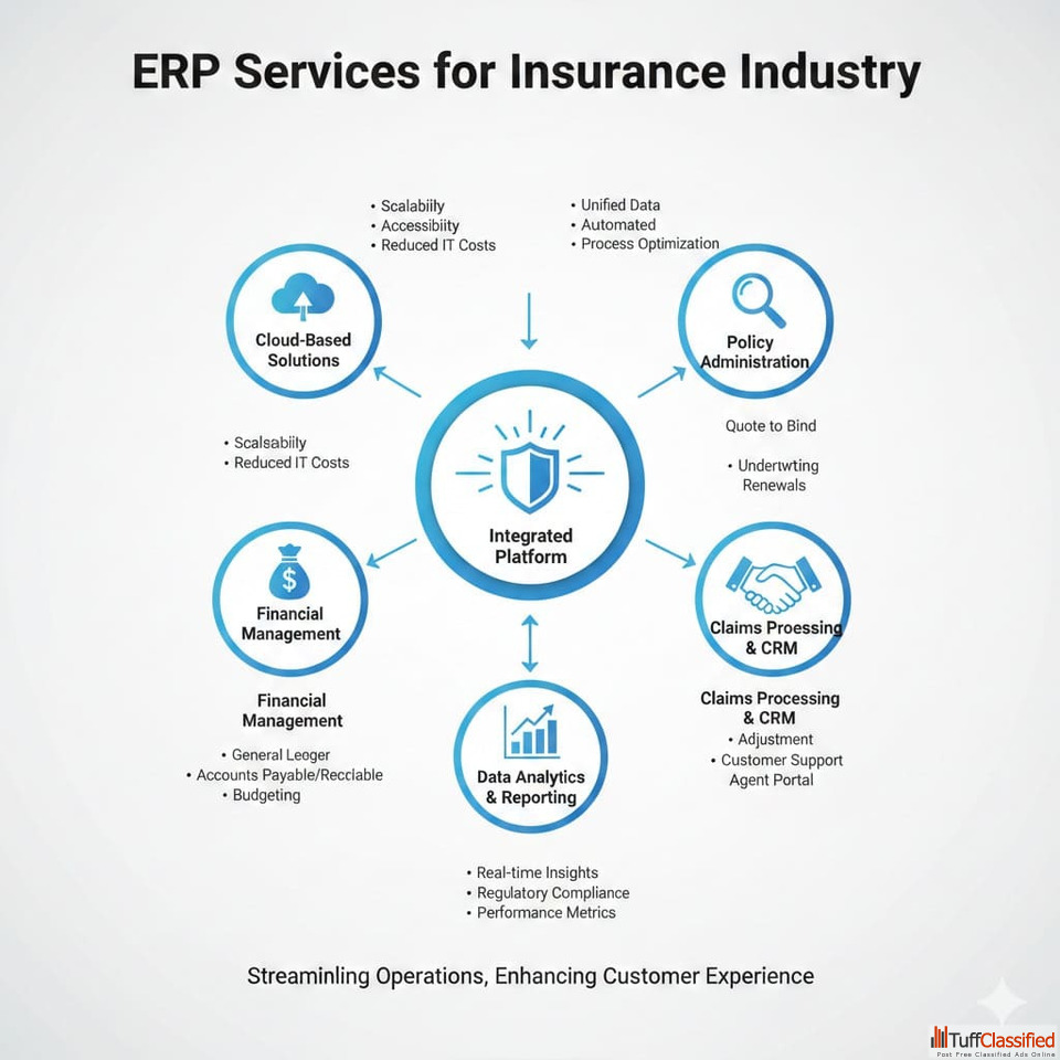 ERP services for the insurance industry help companies manage policy administration, claims processing, finance, compliance, and customer data in one integrated system. These solutions improve efficiency, reduce errors, and support faster decision-making across insurance operations.