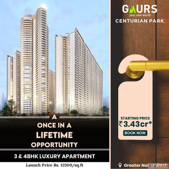 Gaur Centurian Park is the best residential project that gives perfect home to live where you stay easily & get enjoy amazing amenities such as swimming pool, club, park, parking, gym etc. this project offering 3/4 BHK Apartments in Greater Noida West, one of the best thing is that is not a only flat is also Study Apartments at best starting price from 3.43 Cr* only! Gaur Centurian Park floor plan starts from 2746 - 3361 sq.ft. which huge spacious. this is right time to now buy these dream home.