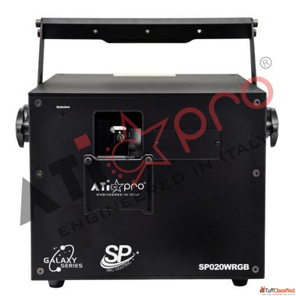 ATI Pro Technologies presents the 20 Watt RGB Animation Laser Light Model SP20RGB, designed to deliver vibrant color beams and stunning graphic projections for professional shows. This high-performance laser creates smooth animations, sharp patterns and dynamic effects suitable for stage events, DJ setups, clubs and concerts. With its powerful 20-watt output, it ensures excellent visibility even in large venues. The compact build, stable performance and versatile control options make it ideal for creative lighting designers. ATI Pro Technologies offers reliable quality, making this model a preferred choice for those seeking impactful RGB animation lighting.