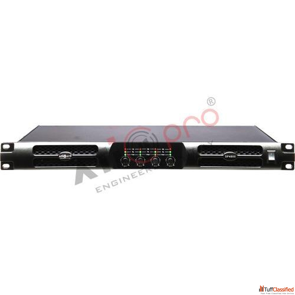 Upgrade your sound system with the ATIPRO SP4800 DJ Amplifier 5200 Watt (4 Channel), designed to deliver powerful output, deep bass, and crystal-clear audio for professional DJ setups and large events. With its 4-channel design, it allows efficient distribution of sound across multiple speakers, ensuring balanced and high-quality performance. Ideal for concerts, clubs, and stage shows, this amplifier provides stable output with minimal distortion even at high volume levels. Built with advanced circuitry and durable components, it ensures reliable operation during long hours of continuous use. ATI Pro Technologies offers this high-performance amplifier for professional-grade audio results.