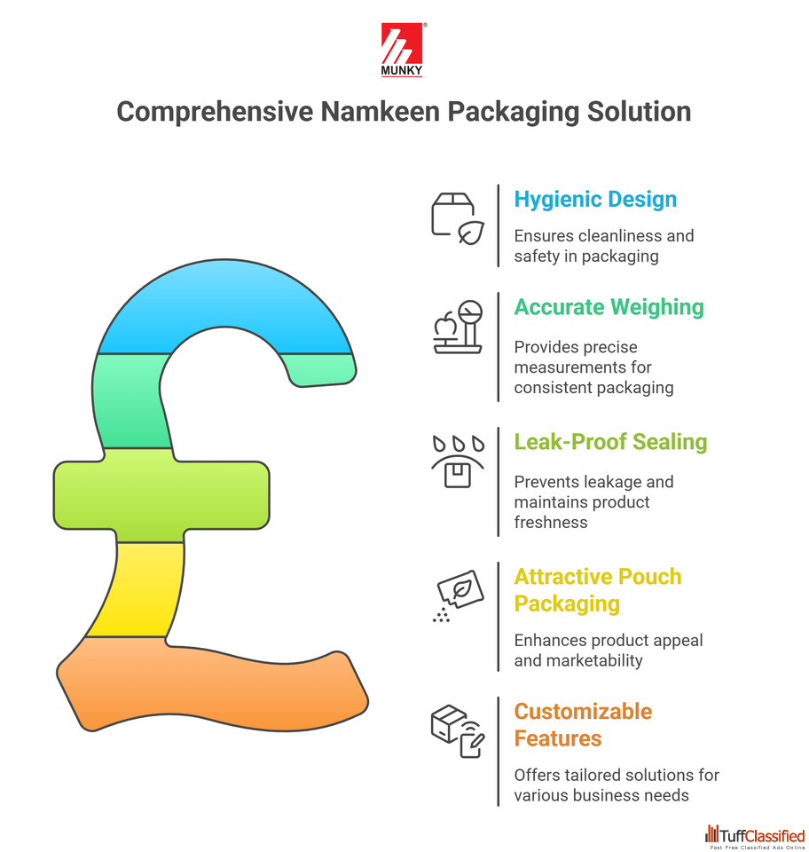 Ensure Fresh, Hygienic, and Fast Packaging of Namkeen, Snacks, and Mixtures with Munky Packaging Machine’s Specialized Namkeen Packing Machines. Desig...
