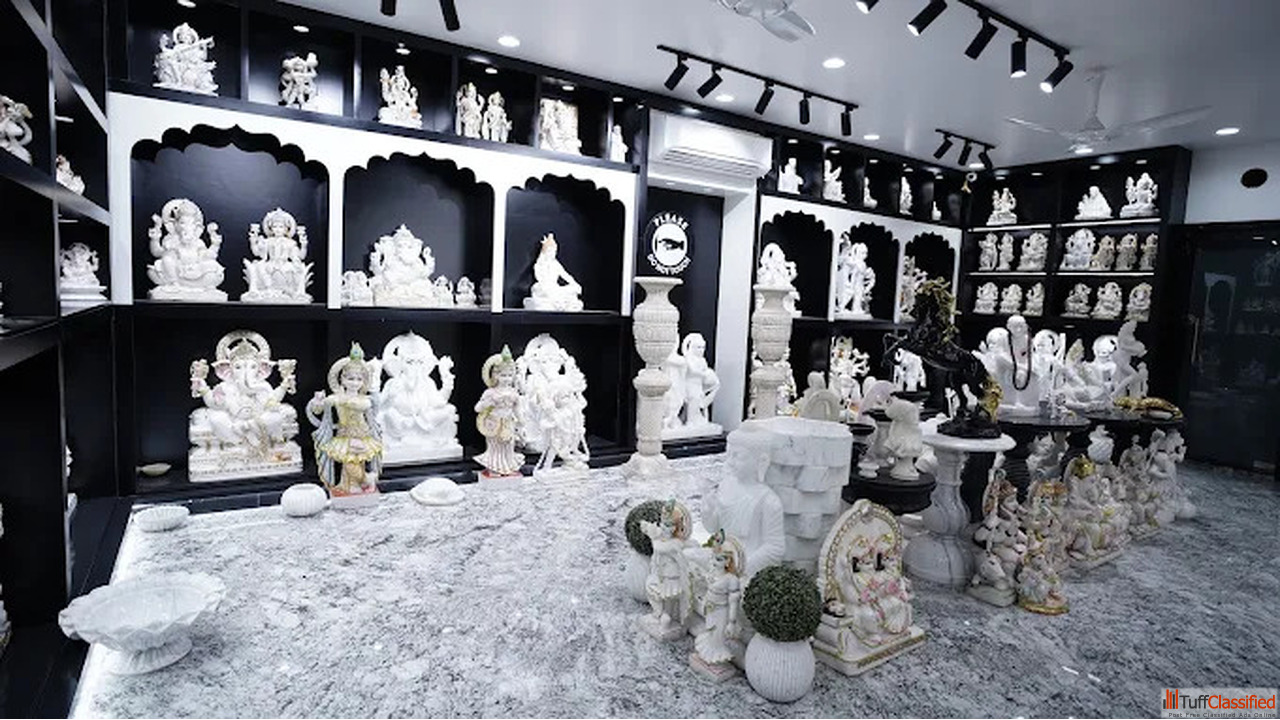 Jain Marble Emporium in Kishangarh is a well-known name for beautiful marble handicrafts, moortis, temples, and mandirs. It is famous for high-quality craftsmanship and top-notch marble. The emporium provides a breathtaking collection of hand-carved idols, decorative items, and custom-designed marble temples that combine tradition with style. Each piece showcases fine artistry and dedication, making it ideal for homes, offices, and spiritual spaces.