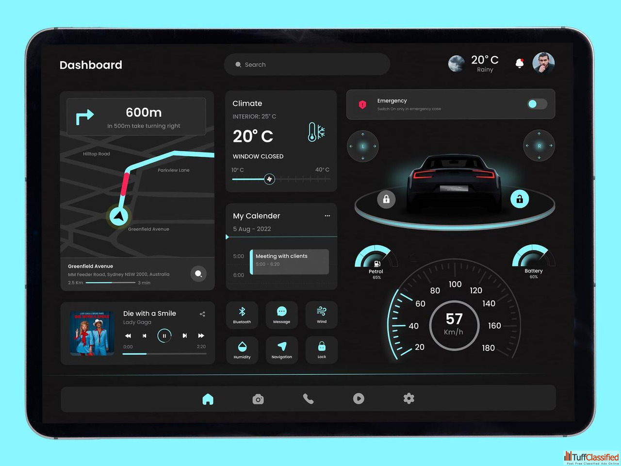 A sleek and intuitive modern car dashboard design by World Web Technology that blends futuristic UI UX, real-time performance insights, and seamless digital innovation for next-gen vehicles. Discover design excellence with this creative dashboard concept.