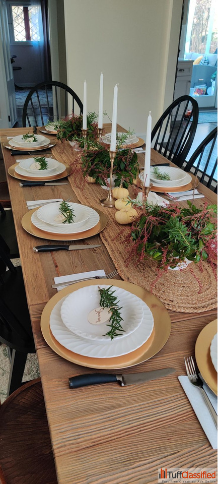 Prefer understated elegance? Use a neutral tablecloth, muted green garland, and simple pillar candles to create a clean, modern Christmas dining look....