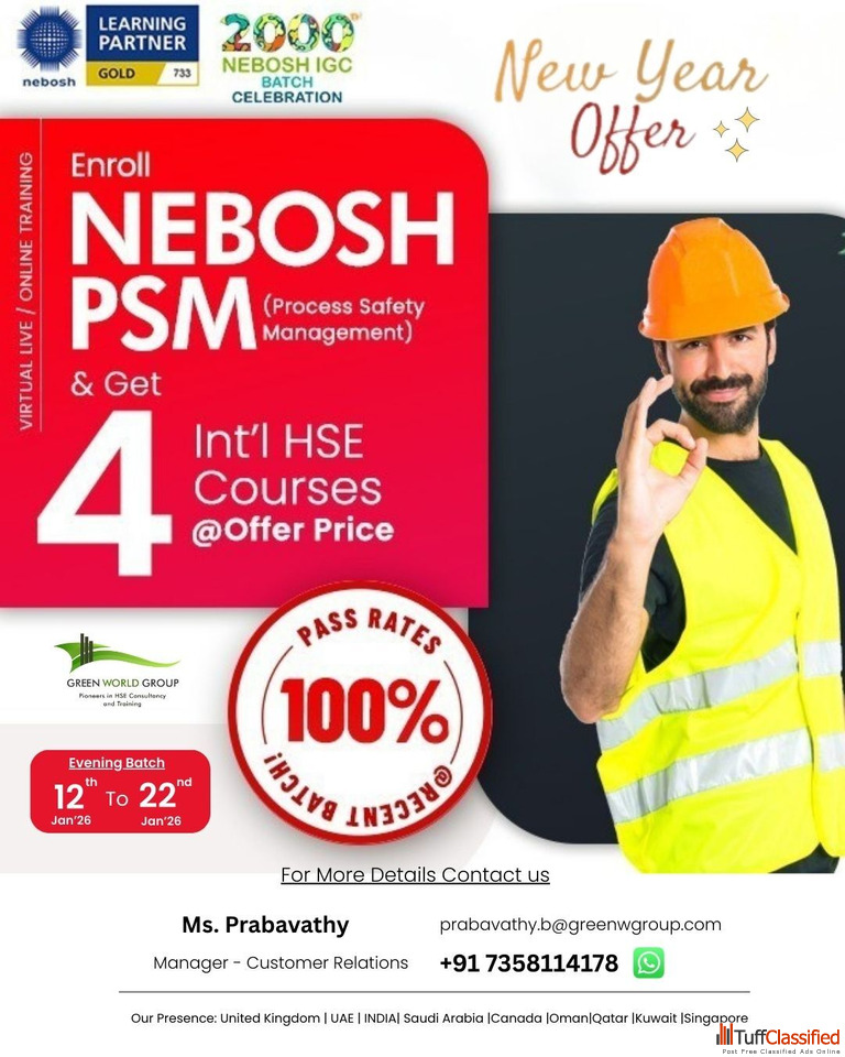 This New Year offer allows you to enroll in NEBOSH PSM and gain access to 4 International HSE courses at a special offer price, maximizing learning value.