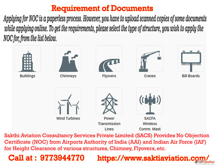 Sakthi Aviation Consultancy Services assists clients in obtaining AAI NOC (No Objection Certificate) for building or structure approval near airports. We ensure seamless application processing in compliance with AAI guidelines, safeguarding aviation safety. Our expert team handles documentation, coordinates with AAI, and ensures timely approvals. Trust us for hassle-free, professional support in securing your AAI NOC for construction and development projects.