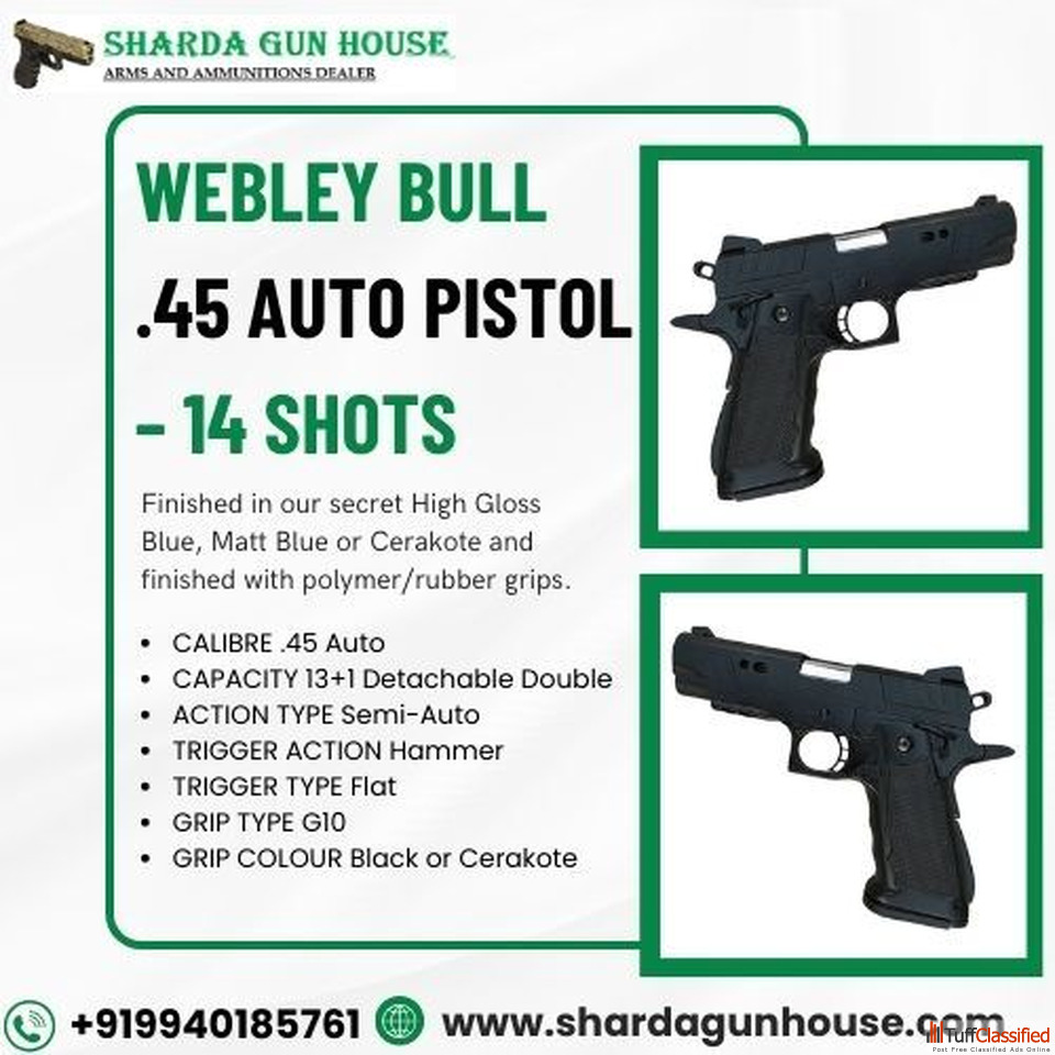 Serious and licensed buyers can connect directly with Sharda Gun House for booking and updated availability. Secure your WEBLEY Bull .45 Auto today with trusted assistance and professional service.