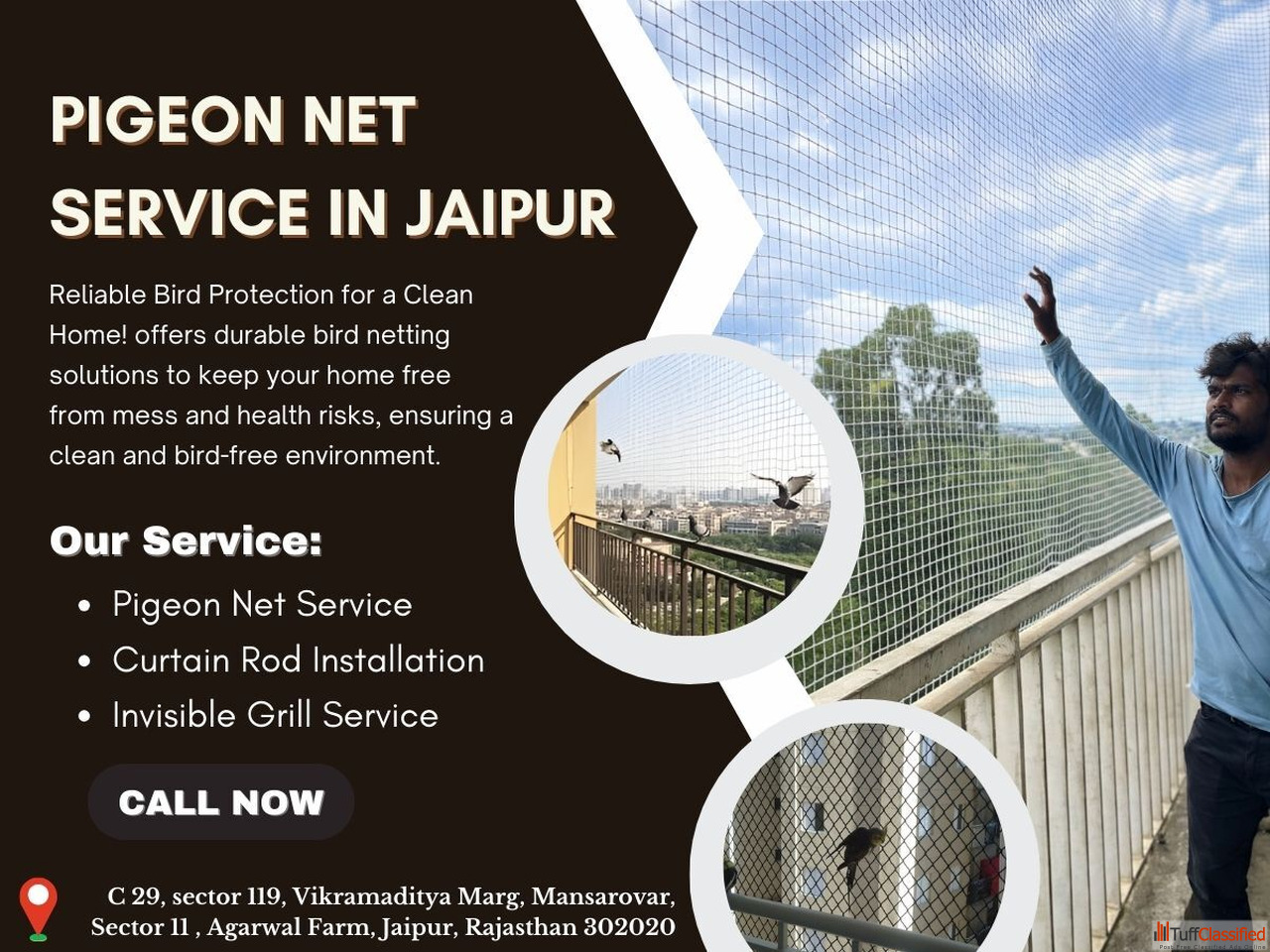 Agar aap apni balcony ya flat me pigeon problem se pareshaan ho, to Pigeon Net Service in Jaipur aapke liye perfect solution hai. Jaipur ke flats aur ...