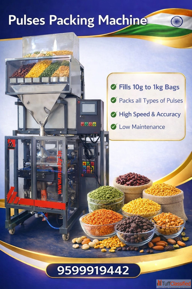 Upgrade Your Packing Business with Our Pulses Packing Machine. It Packs All Types of Dal, Lentils, Beans and Pulses Fast, Accurate and Airtight. This Strong Pouch Packing Machine Uses Smart Weighing and Sealing Technology to Keep Your Products Fresh, Safe from Moisture and Ready for Sale. It Is Easy to Use, Works Smoothly, and Needs Very Little Maintenance. Perfect for Small Businesses as Well as Big Factories Who Want Better Quality Packing and Higher Production.