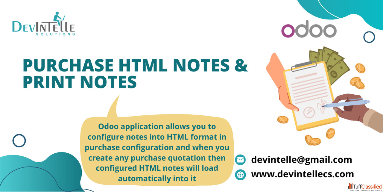 Purchase HTML Notes & Print Notes in Odoo helps users add rich and clear notes to purchase documents using HTML formatting. You can create well-or...