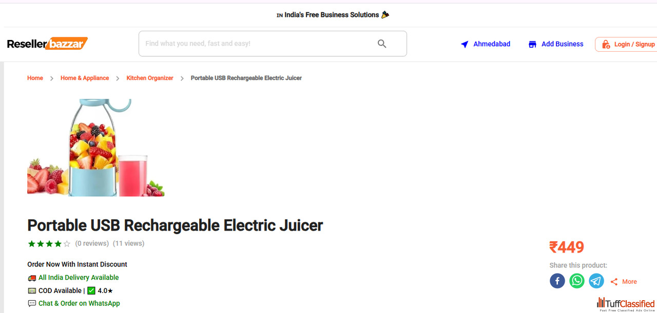 Reseller Bazzar is a free Indian online platform where users can post classified ads for products, properties, services, and more—no login or fees req...