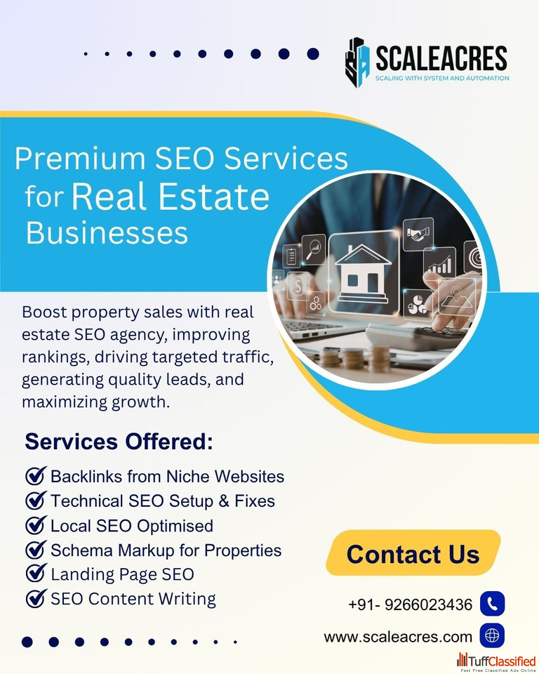 Get high-quality property leads with our expert SEO for Realtors services. We help real estate agents and agencies rank higher on Google, attract targeted buyers, and increase website traffic using proven SEO strategies. From keyword optimization and local SEO to content marketing and technical improvements, our approach ensures better visibility and consistent lead generation. Our solutions are designed to promote your property listings, strengthen your online presence, and deliver measurable results. Start generating more inquiries and grow your real estate business today.