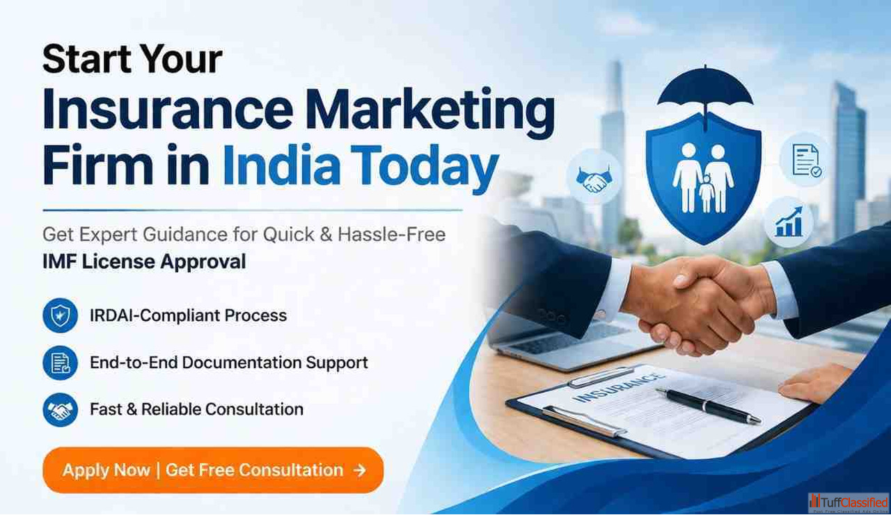 An Insurance Marketing Firm (IMF) is a licensed entity authorized by the Insurance Regulatory and Development Authority of India (IRDAI) to distribute insurance and financial products. It allows businesses to partner with insurers and offer services like policy solicitation and customer support. Insurance Marketing Firm registration involves eligibility checks, principal officer certification, documentation, and application filing through the IRDAI portal. Proper registration is mandatory to legally operate and expand in the insurance sector. Get expert assistance to simplify the process, ensure compliance, and obtain your IMF license quickly and efficiently.