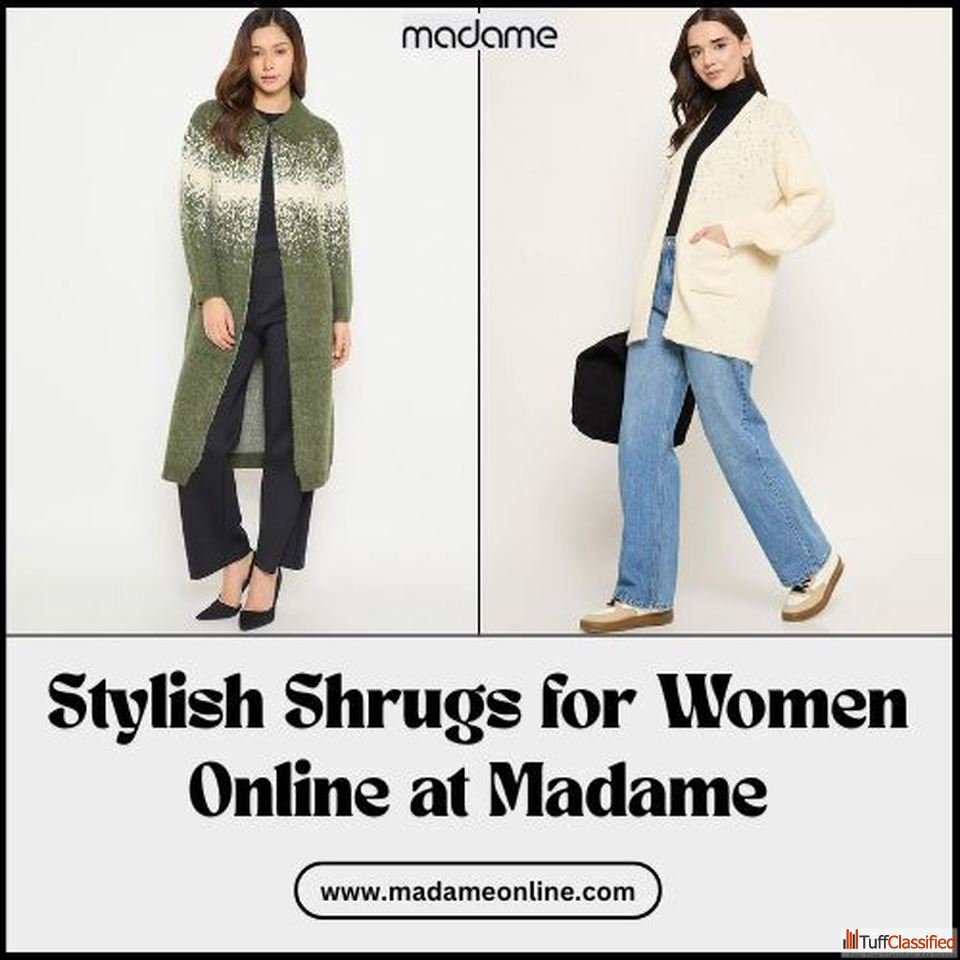 Refresh your wardrobe with trendy shrugs for women from Madame. This stylish selection of women's shrugs offers everything from lightweight layers to statement long shrugs that add effortless charm. Perfect for all seasons, these shrugs are easy to style with everyday western wear. Designed with attention to fit, fabric, and fashion-forward details, Madame’s shrugs help you create refined looks without trying too hard. Elevate your daily outfits with layering essentials that feel as good as they look.
