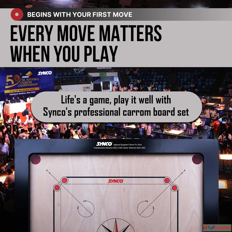 Synco Compact and Eco-Friendly Synco 20-Inch Carrom Board Synco 20-inch Carrom Board Comes with 4mm thick ply ensure a sturdy and smooth surface.