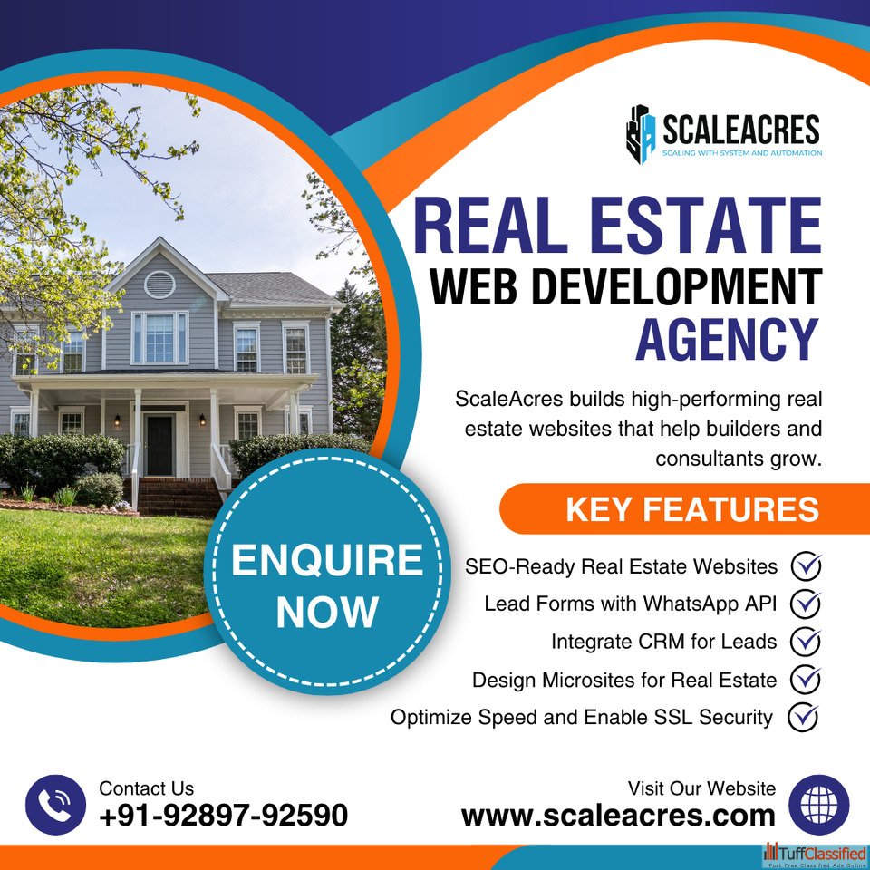 ScaleAcres is a real estate website development agency specializing in building high-performing, SEO-ready property websites. Our real estate web development services help builders and consultants generate more qualified leads through fast, secure, and mobile-friendly websites integrated with CRM and WhatsApp.