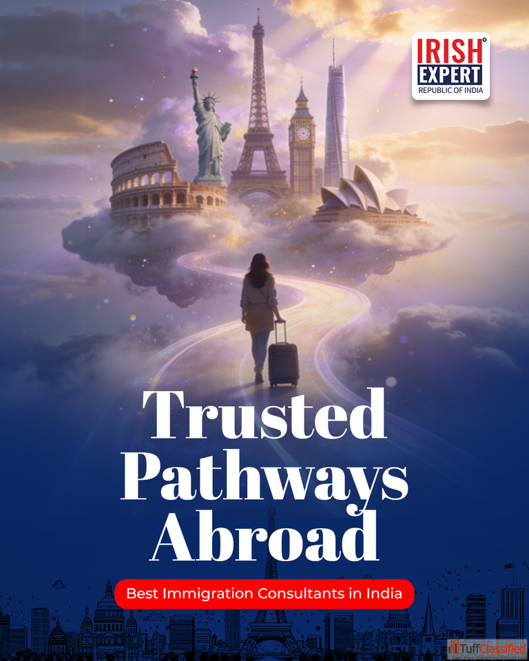 Irish Expert presents Trusted Pathways Abroad, showcasing a clear and reliable journey toward global opportunities. The visual highlights iconic international landmarks, symbolizing worldwide study, work, and immigration destinations. Designed to inspire confidence, the image reflects Irish Expert’s commitment to transparent guidance, expert visa support, and personalized solutions. Recognized as one of the best immigration consultants in India, Irish Expert helps students and professionals turn their overseas dreams into reality with trusted expertise and end-to-end support.