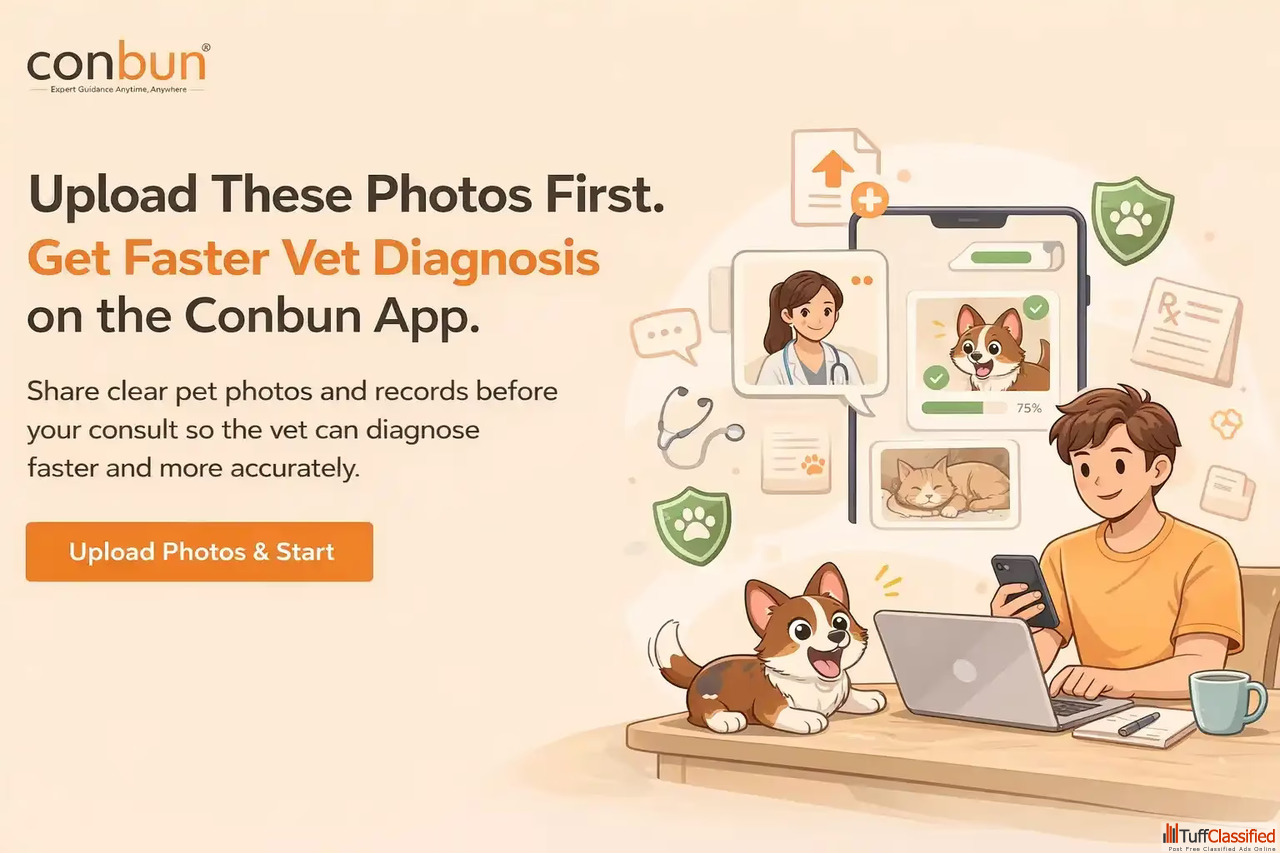 Upload your pet’s photos before consultation to get a faster and more accurate diagnosis on the Conbun app. This simple step helps vets quickly understand your dog or cat’s condition and provide better treatment advice. Ideal for busy pet parents in India looking for quick, reliable, and stress-free online vet consultation support anytime, anywhere.