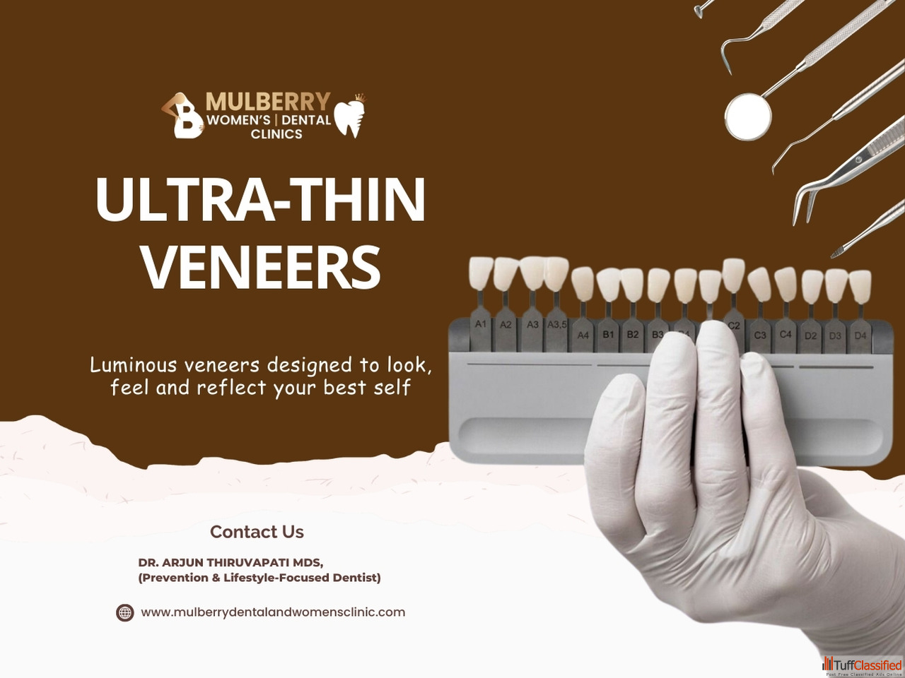 Many individuals feel self-conscious about uneven, stained or chipped teeth. At Mulberry Dental and Women's Care Clinic, we understand the impact of dental imperfections on confidence and daily life. Our treatments on dental veneers in Hyderabad, led by Dr. Arjun Thiruvaipati, provides a fast and effective solution for improving the appearance of your teeth. Veneers can transform smiles by covering imperfections and offering uniformity, giving patients a natural, bright and flawless look.