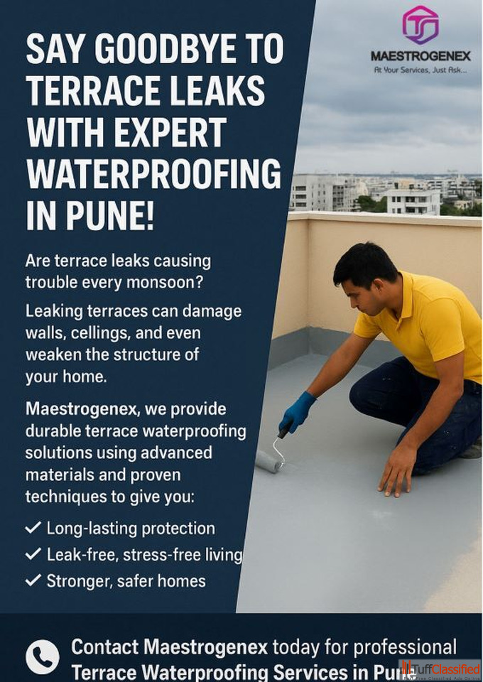 Maestrogenex provides reliable and long-lasting Waterproofing for Terrace in Pune, helping protect your property from water leakage, dampness, and str...