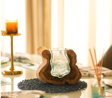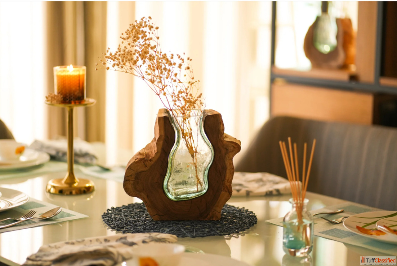 Redefine your home décor with the Wooden Glass Valley Curves Showpiece Vase, a true blend of rustic roots and modern glass artistry. Handcrafted with care, this unique vase is designed to turn any table or corner into a stunning focal point.
